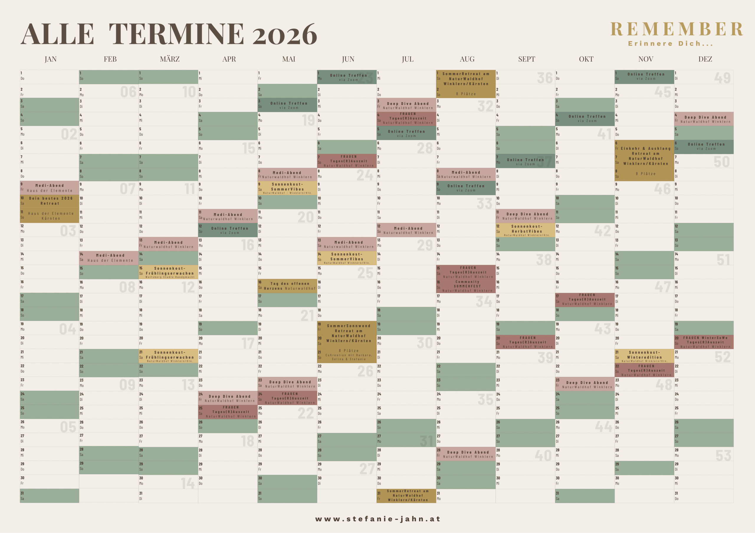 In der Kalenderübersicht darüber findest Du alle Termine des Jahres.